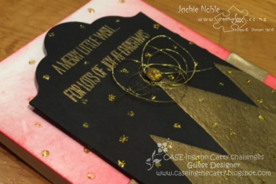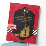 I could have added the wreath like on the original card, but I just fell in love with the shaped black cardstock with the gold embossing in the card on page 72.