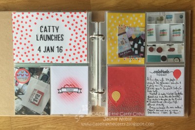 And rather than using an ampersand like the original – I chose to have balloons on the bottom left pocket on page two .First I punched out a balloon using the Balloon Boutique Punch before adding a sticker from the Memories in the Making Accessory Pack.