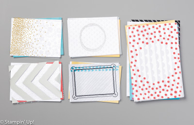 The Title card is using one of the 4 x 6″ overlays available in the Sale-A-Bration speciality collection. In the collection there are several coloured overlays like the one above, but also some that are gold on one side and silver on the other.