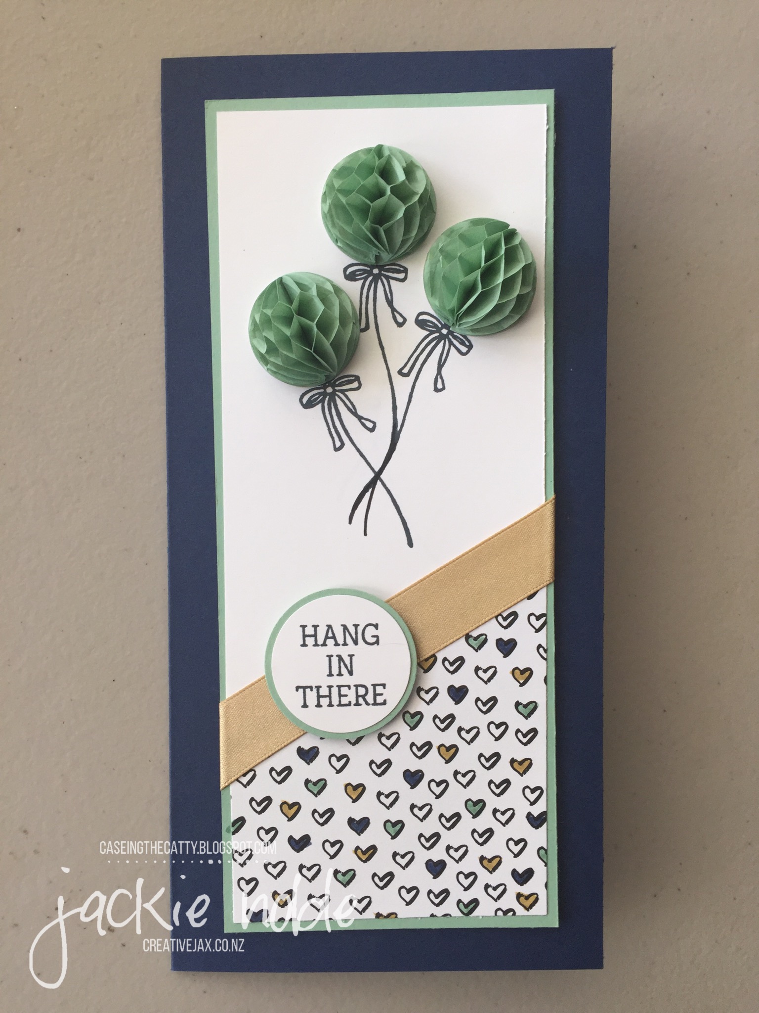 Totally love your card, Jackie! The DL shape makes a nice change and the honeycomb balloons look fabulous. Love the angled DSP and sentiment as well.