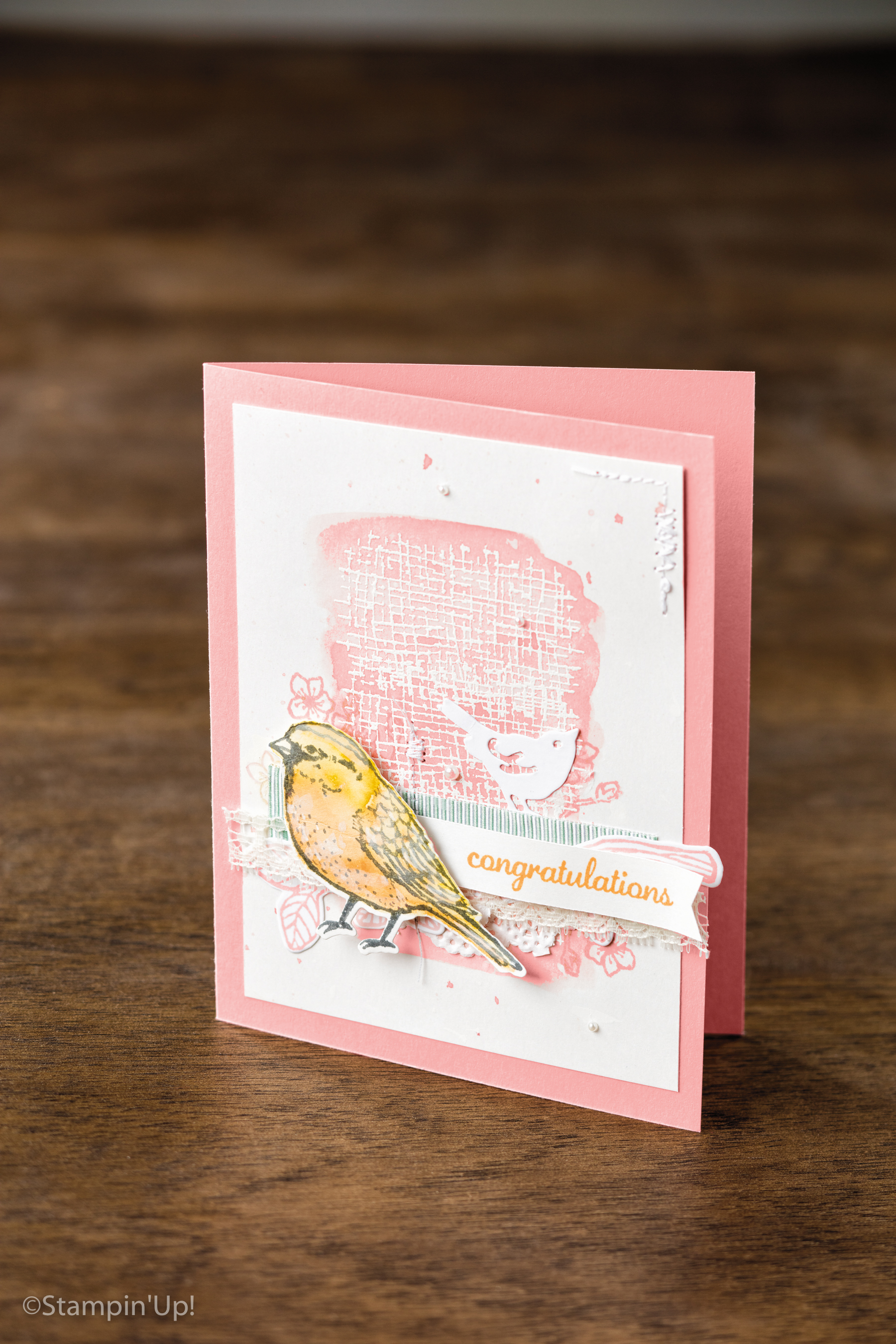 This week I’ve used two cards in my CASE. Firstly I started with the card on page 52 which features the images from the Best Birds stamp set and elements from the Birds & Blooms Thinlits. Secondly I took my colour palette from the card at the bottom left corner of page 48.