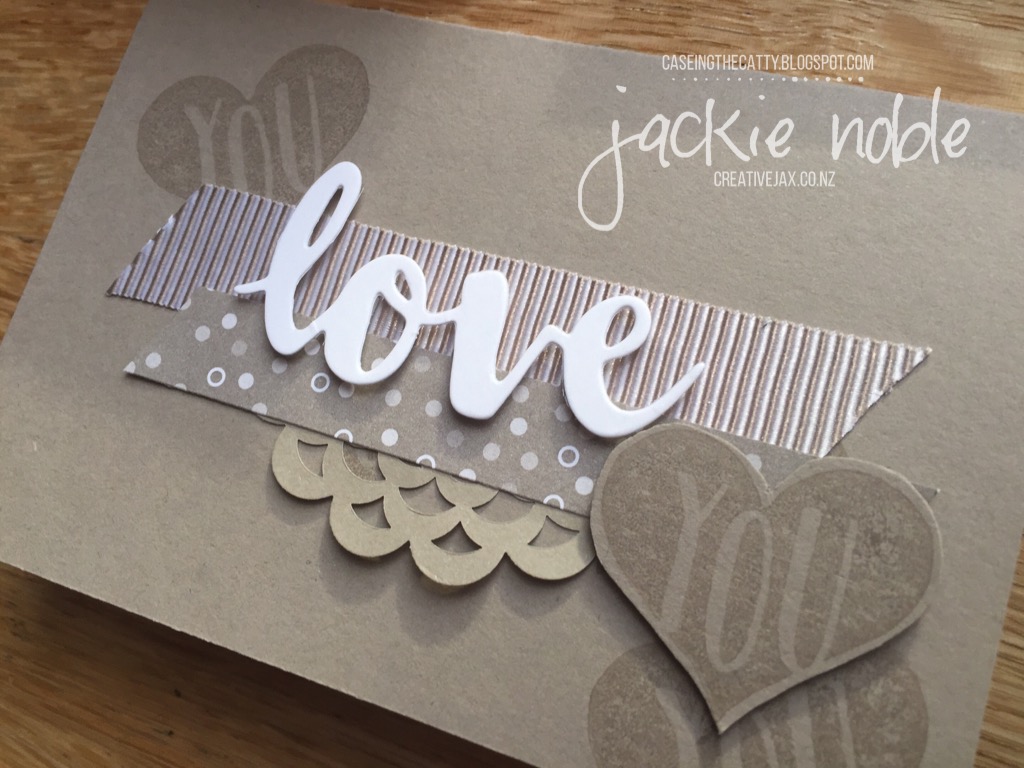 This week I’ve taken inspiration from the cute card on page 110 that features the Love sentiment cut using the Sunshine Wishes Thinlits paired with the heart image from the Everyday Occasion Stamp Set. I’d been keen to get my Sunshine Wishes Thinlits out so decided to make a set of cards in the 20125-2107 In Colors.