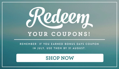 A final reminder – don’t forget to redeem your Bonus Coupons from last month if you haven’t done so already. After 31st August – they expire!