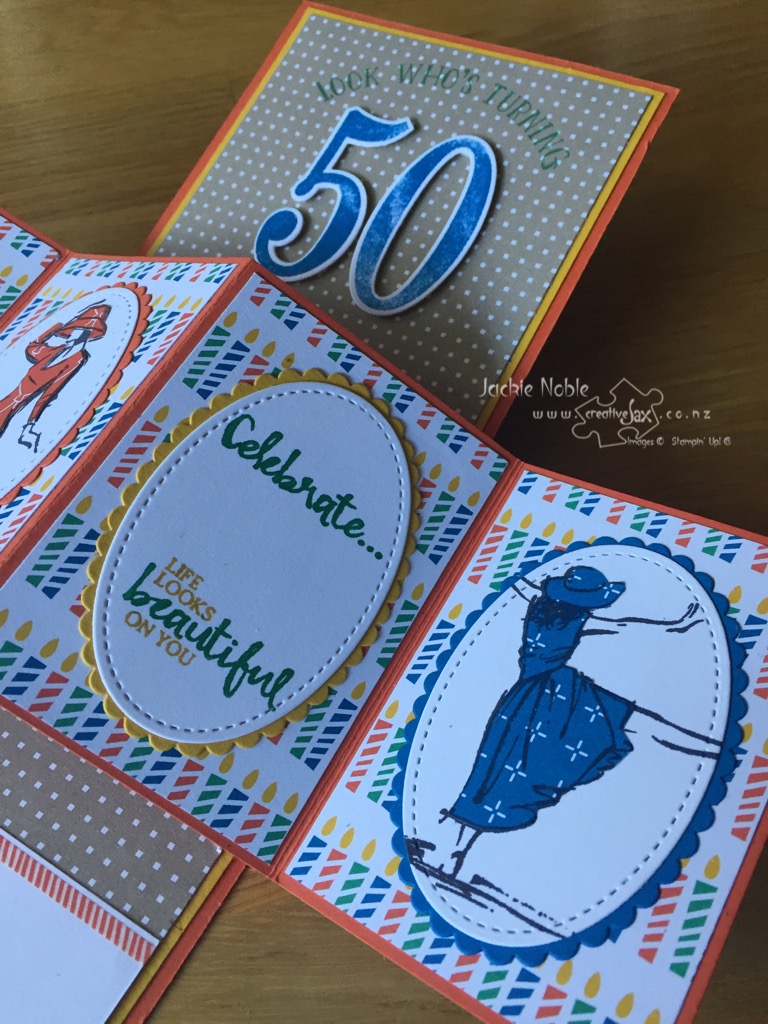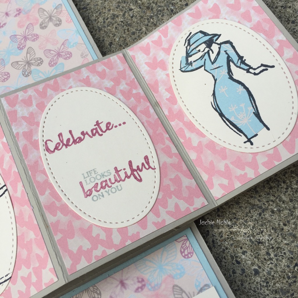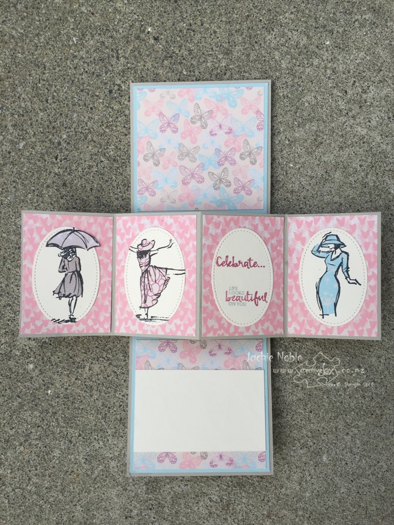 If you read my recent post about On Stage Live held in Brisbane last month, You may remember that I was a Showcase Stamper for the stunning new “Beautiful You” stamp set. I did several projects including a Pop-Up Swing card. Here’s a collage of the project. This was the first time I had done this technique and searched for a tutorial on YouTube to teach me – luckily there were plenty!