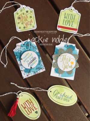 Checkout what I’ve done to CASE the Tin of Tags Project Kit in these photos which show the 10 original tags – each beside a non-Christmas a CASE,