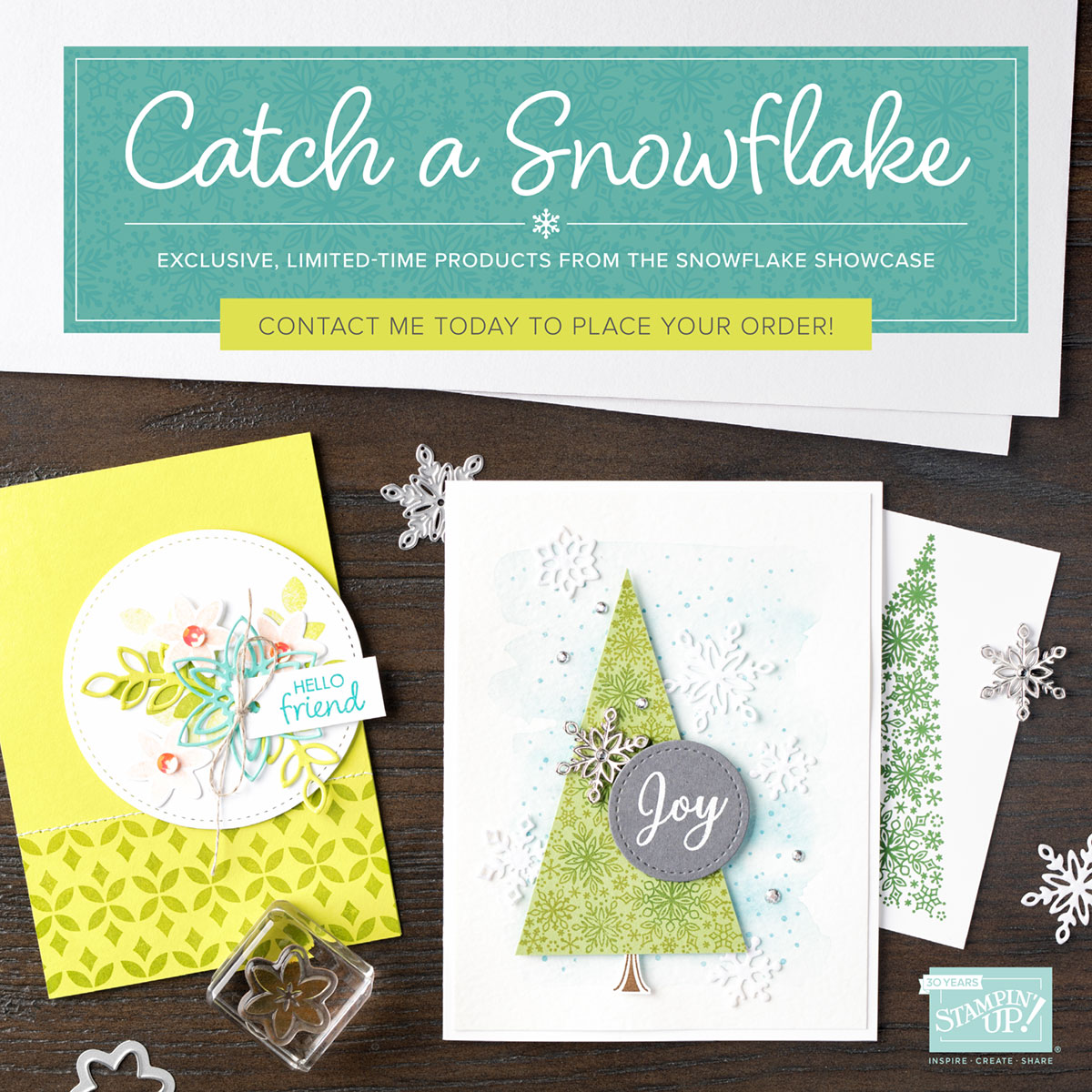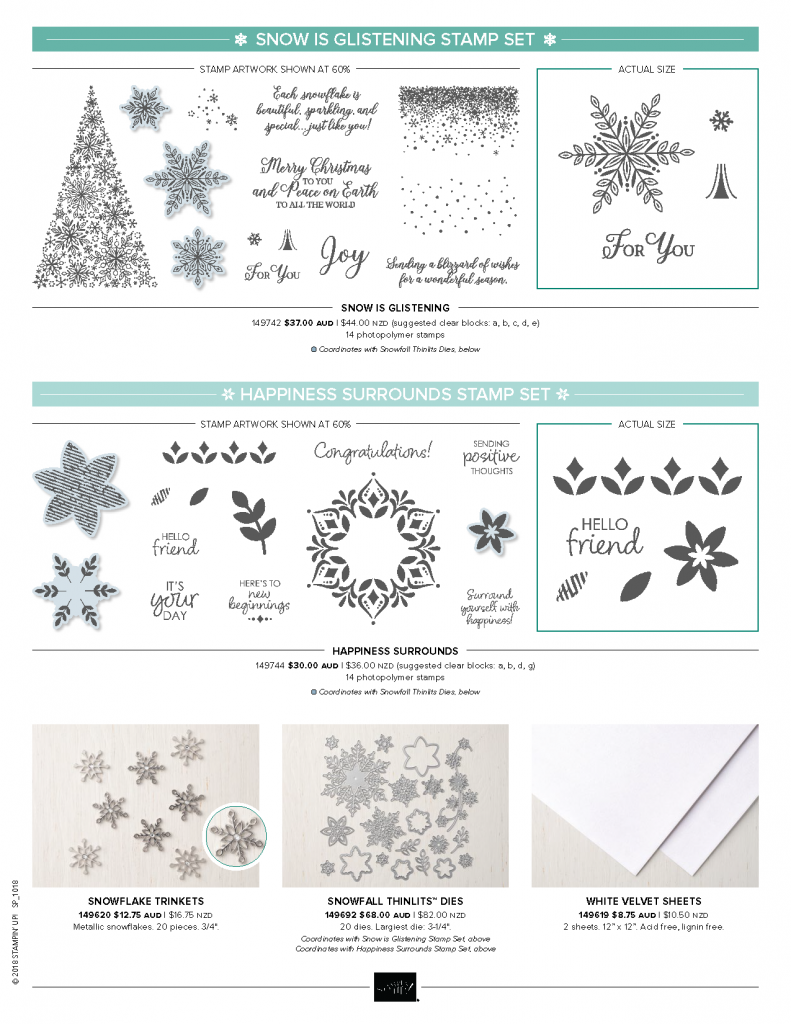 There are two stamp sets, embellishments, velvet paper and thinlits available as part of the Snowflake Showcase.
