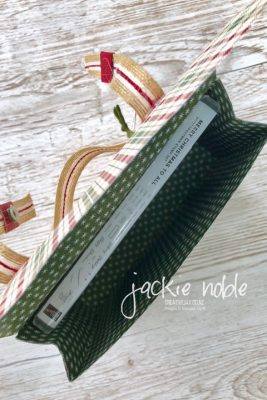 The coordinating products in the Festive Farmhouse Suite were perfect to decorate the bag and turn it into a container that holds items the size of a Stamp set. You can see in the photo below of the open satchel, that I’ve put a single stamp case inside – but it could easily fit more.