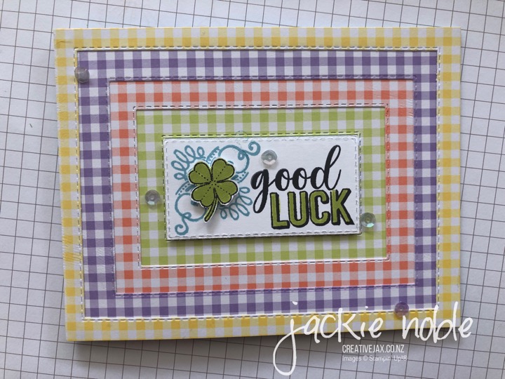 First up a Good Luck card that used the four shapes that were outside of the frames (shown in the bottom right of the photo above).