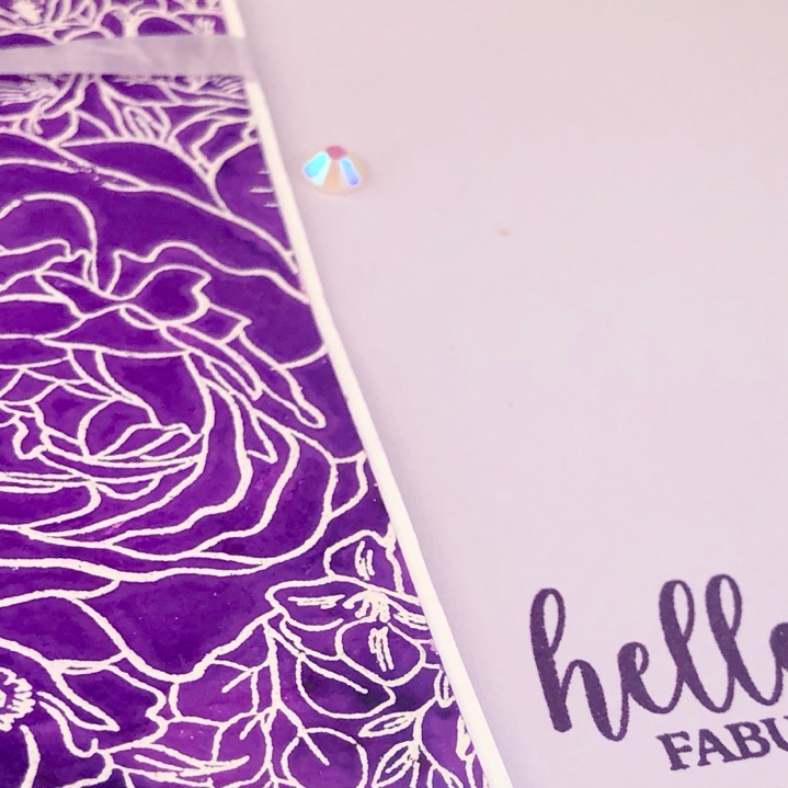 The outside of the card has the Breathtaking Bouquet image heat embossed in white with spritzed  Gorgeous Grape Pigment Sprinkles.